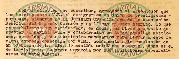 El 2 de marzo de 1949 y mediante carta dirigida al Sr. Obispo D. Ángel Herrera Oria como presidente de la Comisión Organizadora de la Asociación Costructora Benéfica del Sagrado Corazón, los arquitectos: D. Enrique Atencia Molina, D. Juan Jáuregui Briales y D. Eduardo de Burgos Carrillo, aceptan proyectar y dirigir el proyecto, llamado inicialmente, Parroquia Modelo para 10.000 feligreses y 2.000 viviendas, que se quiere llevar a cabo en los terrenos de la hacienda Carranque (entre otras tantas). Estos mismos arquitectos siguieron con la proyección y dirección de la barriada cuando el Instituto Nacional de la Vivienda asumió el mismo.