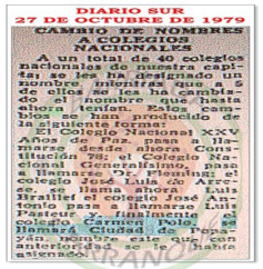 Aunque no se ha podido encontrar más información sobre esta denominación del colegio, tenemos que puntualizar, que los colegios tuvieron cambios en sus gestiones en sus primeros años, siendo posible que la denominación que nos atañe fuera provisional o puntual (todavía estamos en fase de investigación), y que posteriormente se le diera el nombre de Carmen Polo de Franco.