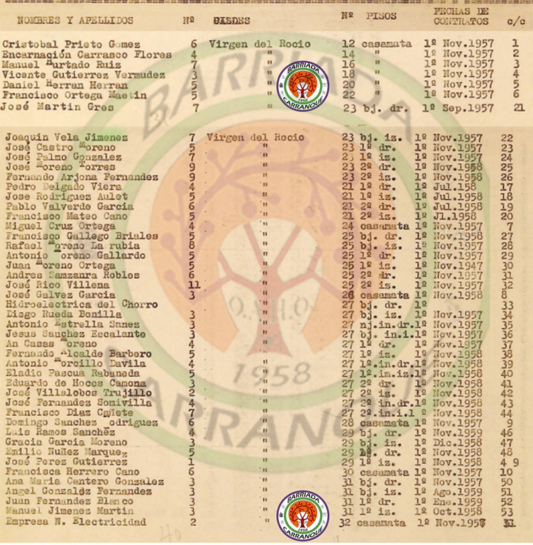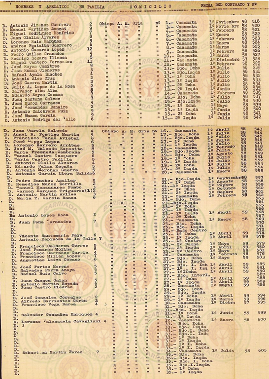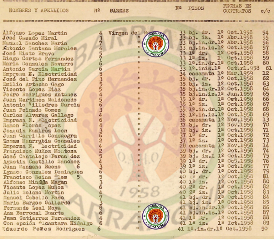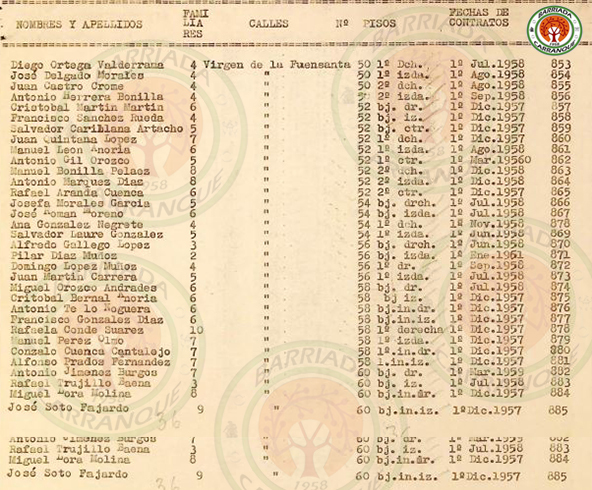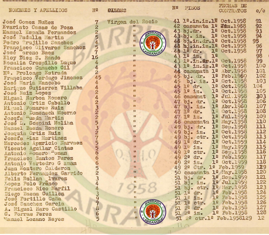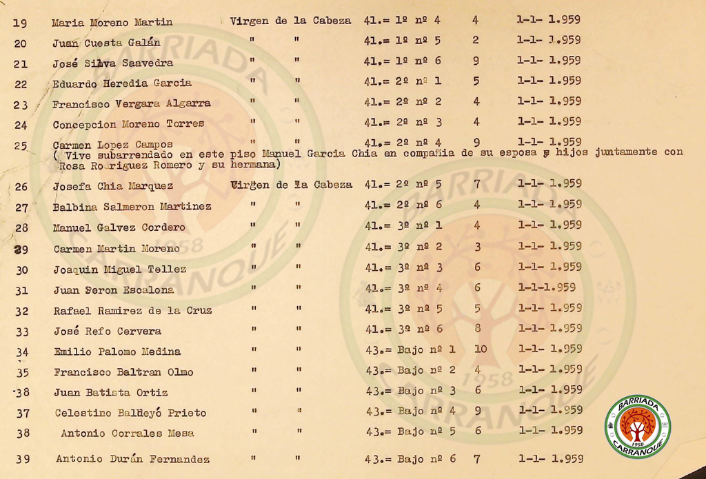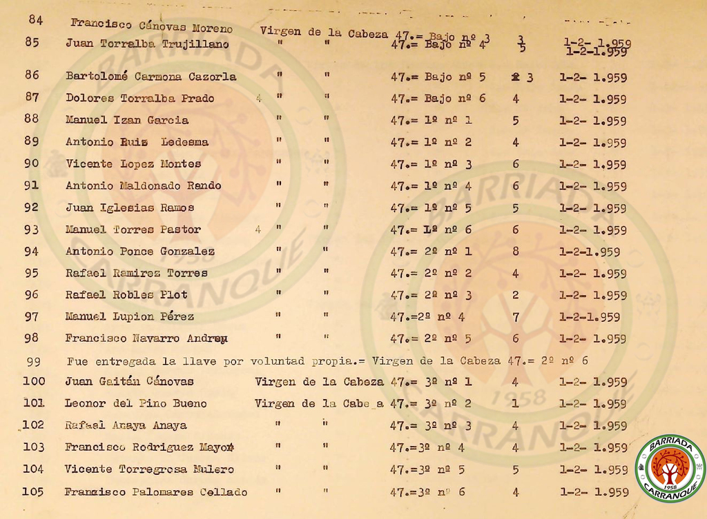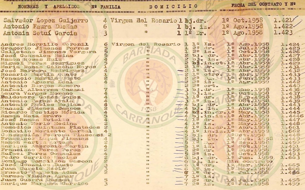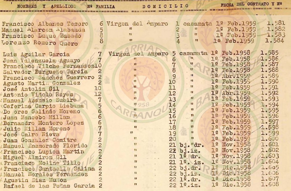 9.1.4 Listado de nombres (con números de contratos) de los primeros Carranqueños y Carranqueñas de la Barriada.