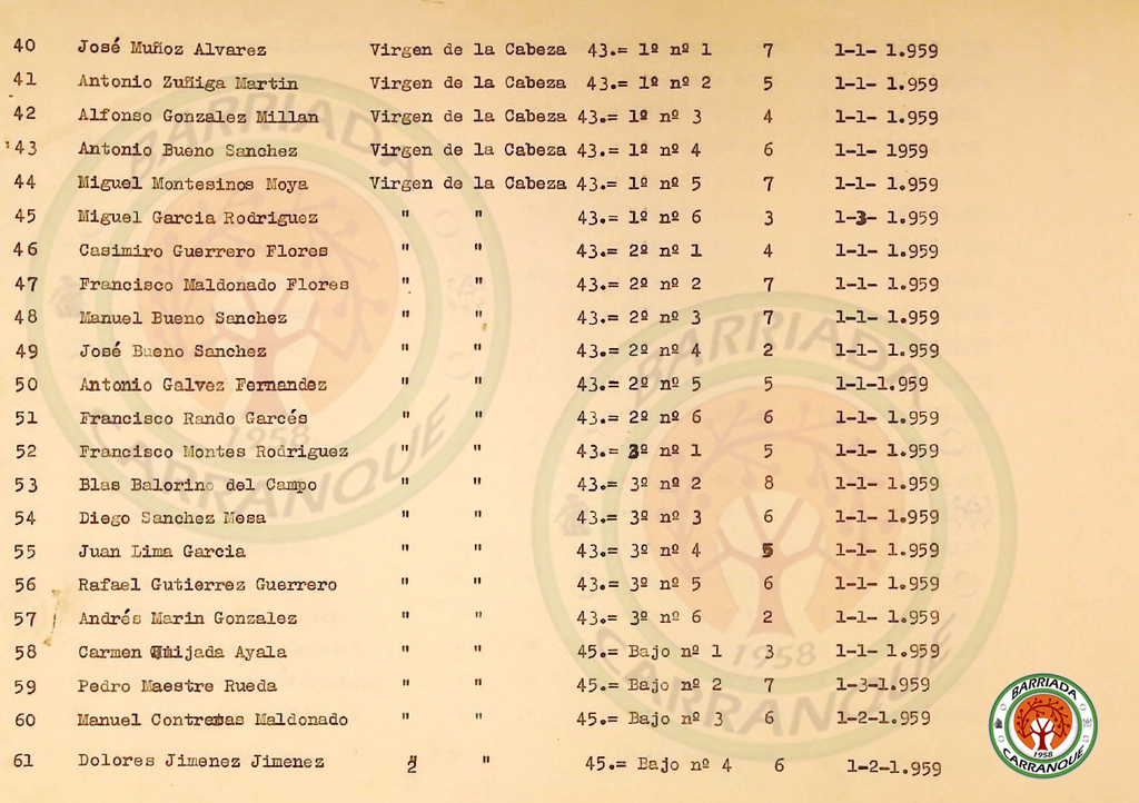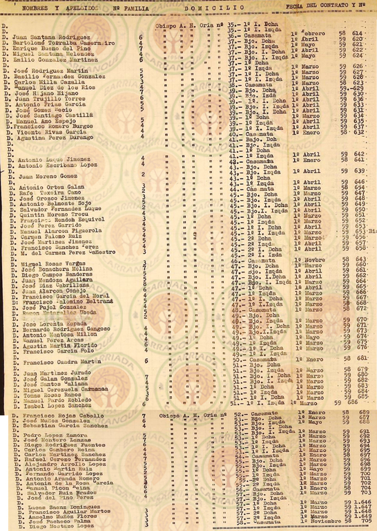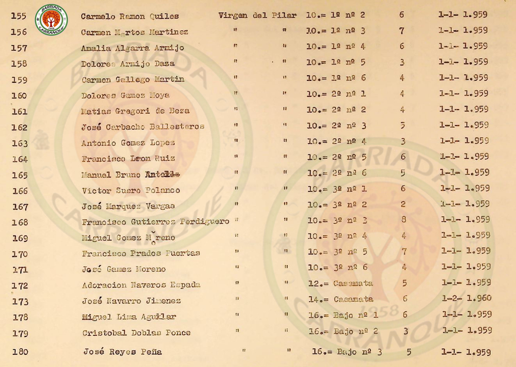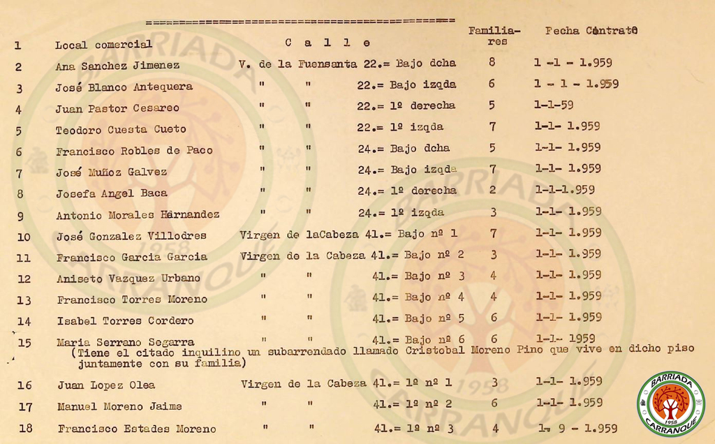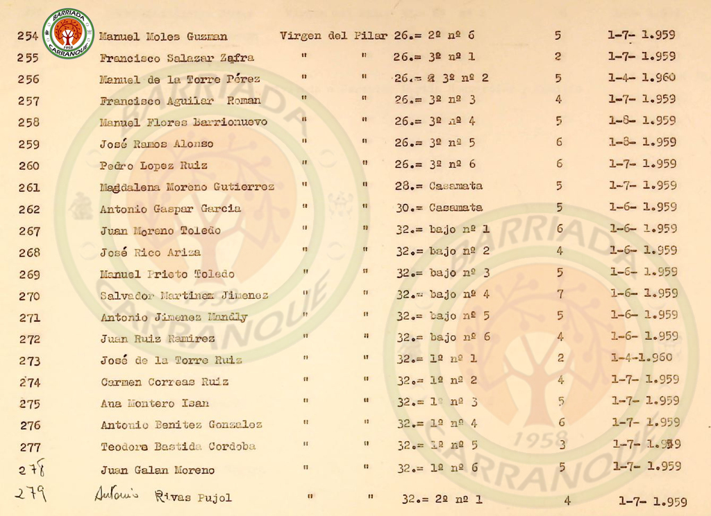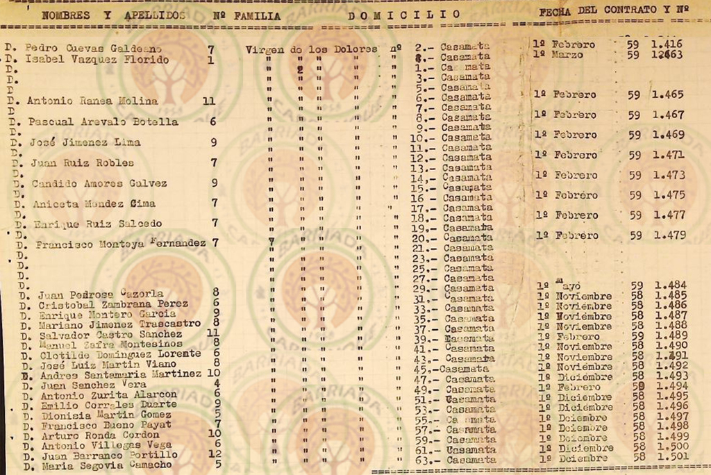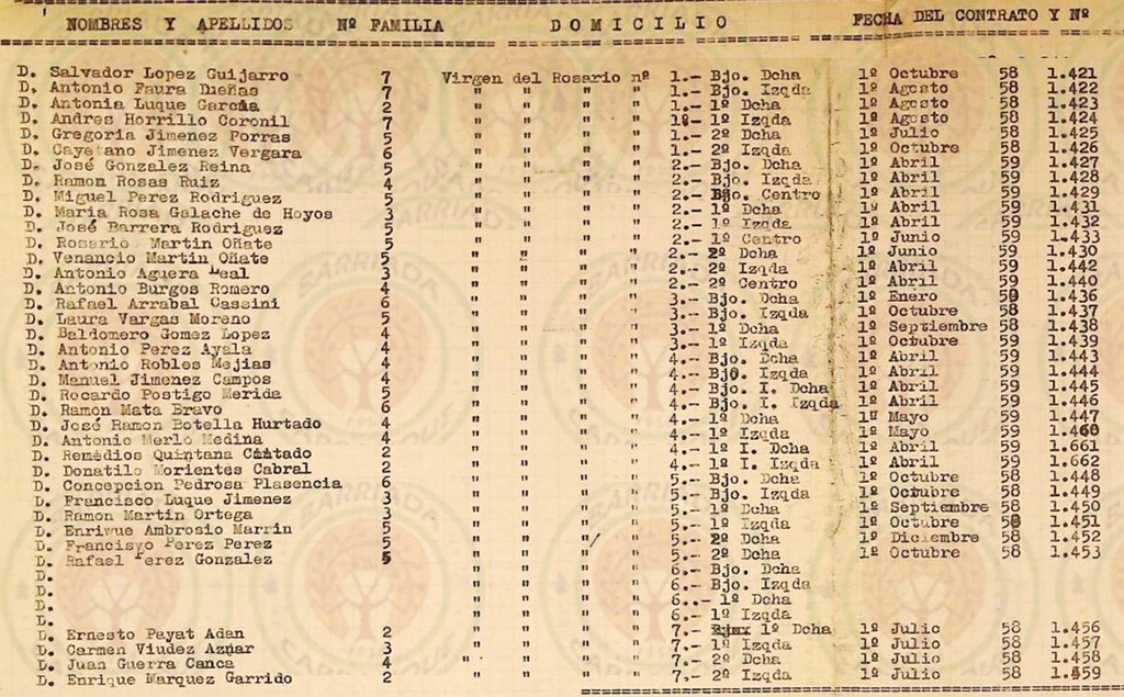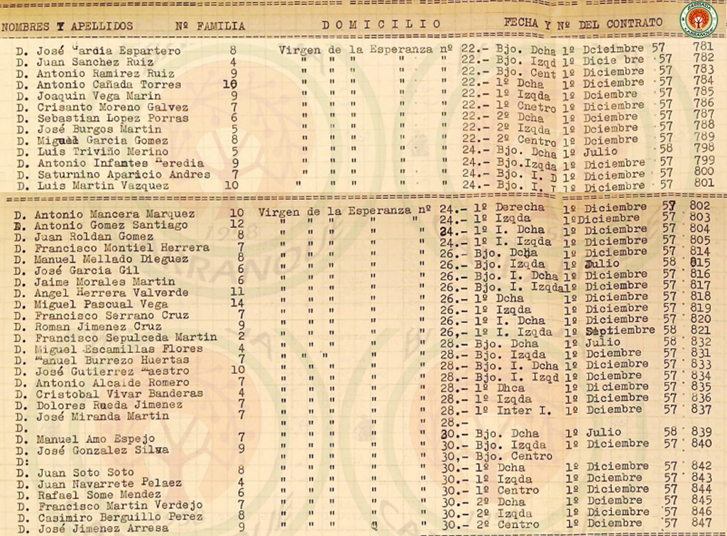 9.1.4 Listado de nombres (con números de contratos) de los primeros Carranqueños y Carranqueñas de la Barriada.