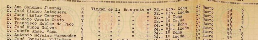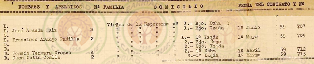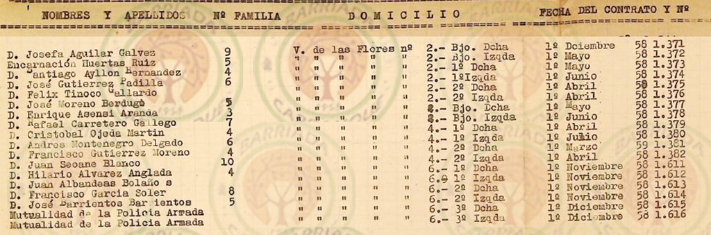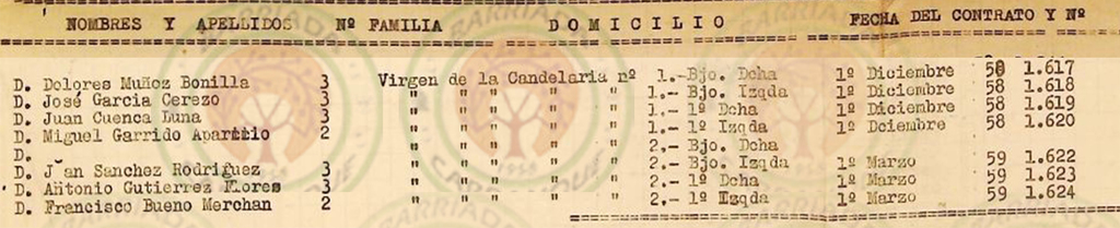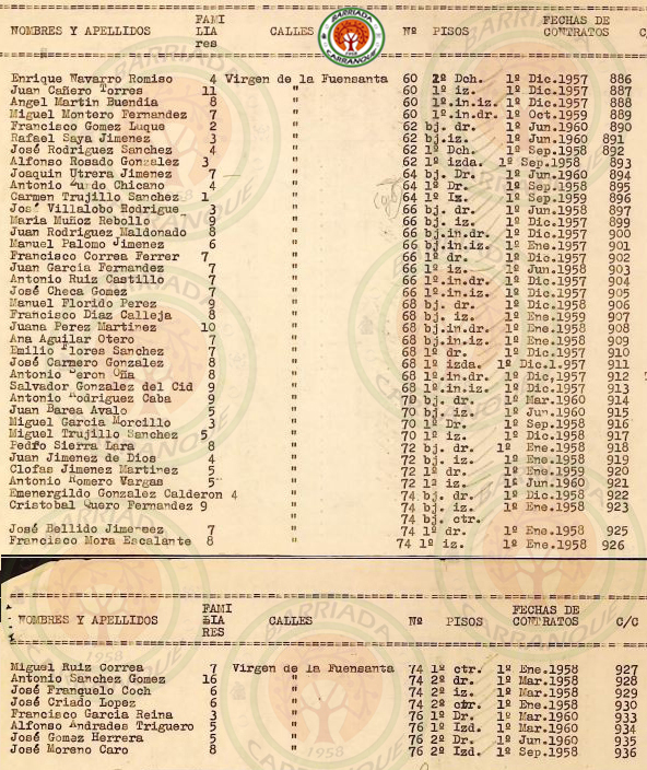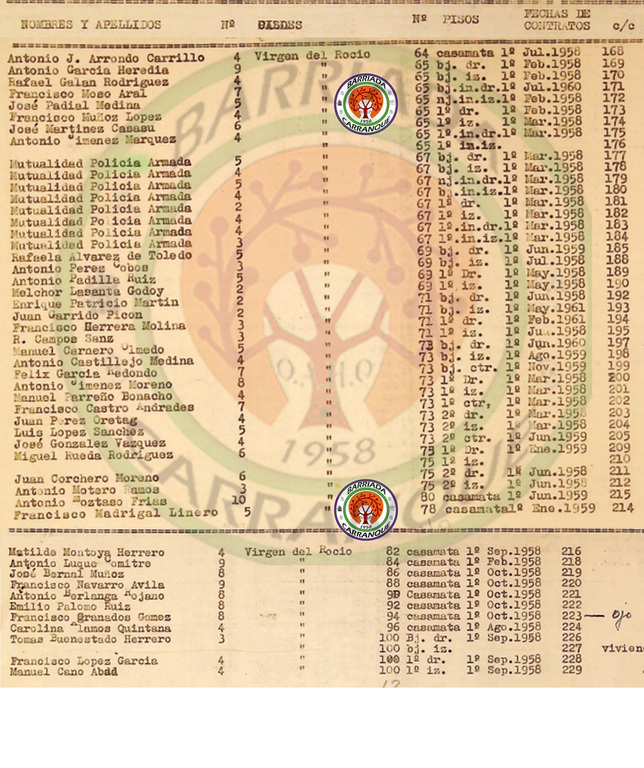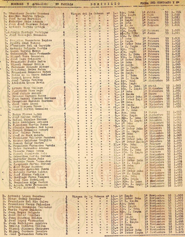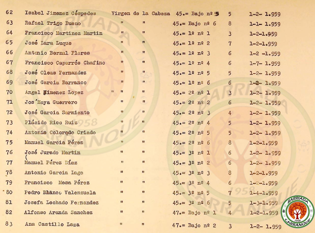 Publicaremos en este punto, los distintos listados de los beneficiarios con viviendas en Carranque que se encontraron en los Archivos del Instituto Nacional de la Vivienda.